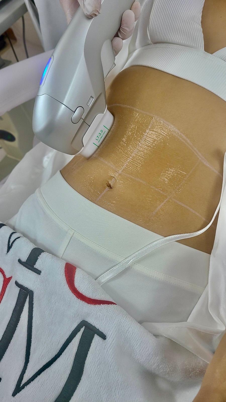 El procedimiento consiste en la aplicación de un haz de ultrasonido de alta frecuencia y alta energía produciendo cambios celulares mediante la elevación de la temperatura con el fin de eliminar arrugas y flacidez de las zonas tratadas y reafirmar zonas del cuerpo que denotan edad como brazos o papada.