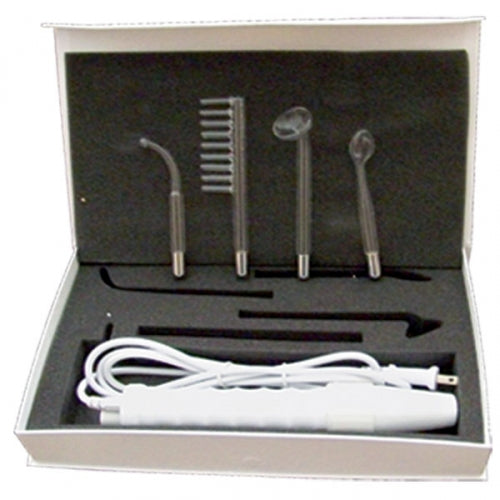Viene con: mango, electrodo para acné, electrodo de cuchara, electrodo de hongo y electrodo de peine.